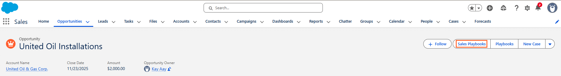 - The new Sales Playbook button will appear on the top right corner along with the other tabs.