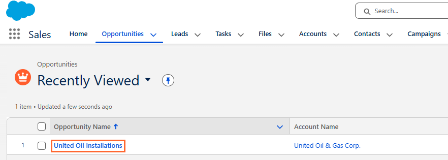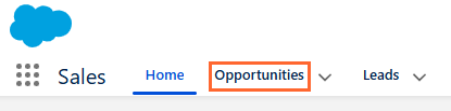 - Navigate to the Sales page in Salesforce and click the Opportunities tab.