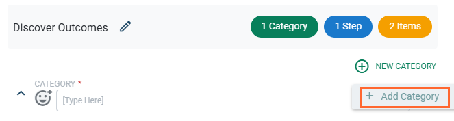 - Click + NEW CATEGORY and then click + Add Category to add a new category.