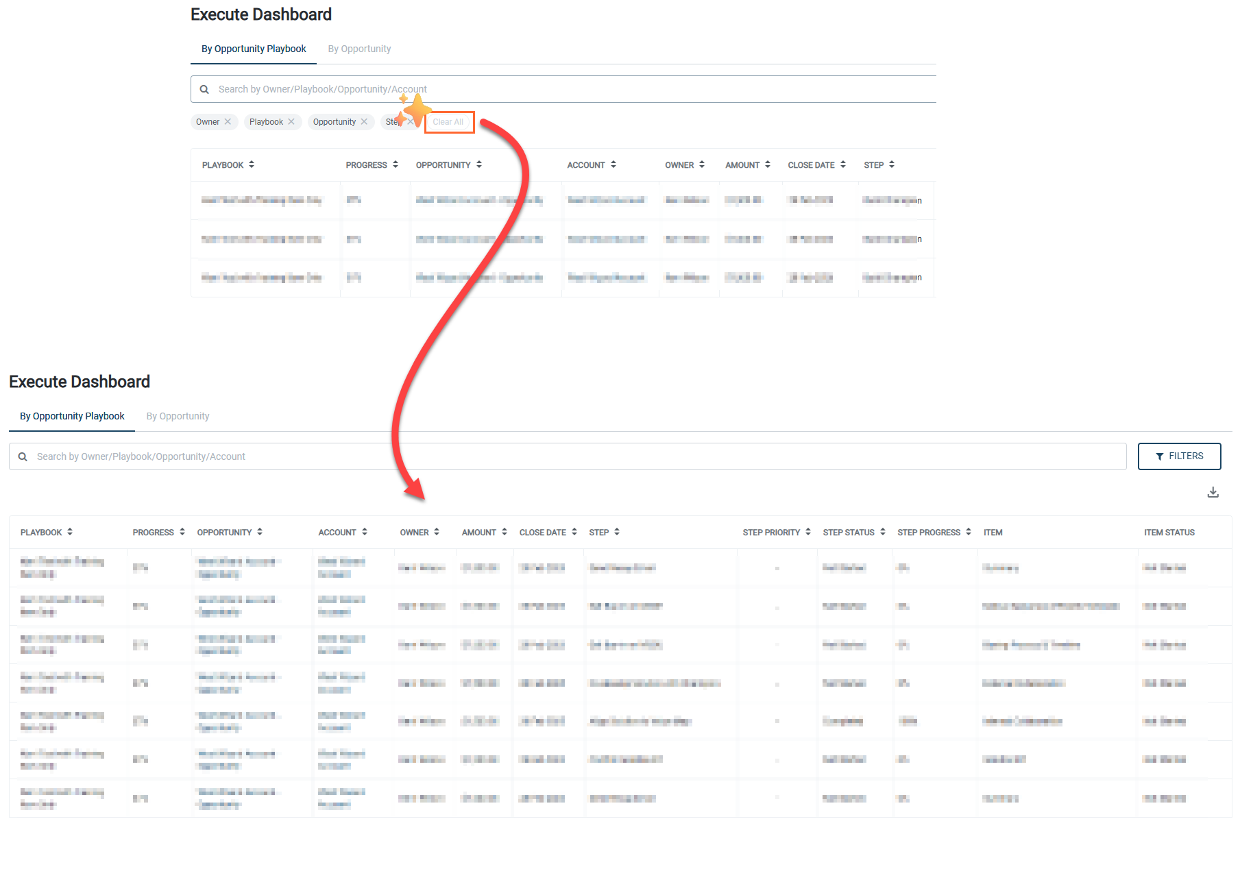 2. Feature Title: Clear All filter pill has been added to clear existing filters on the Execute Dashboard view